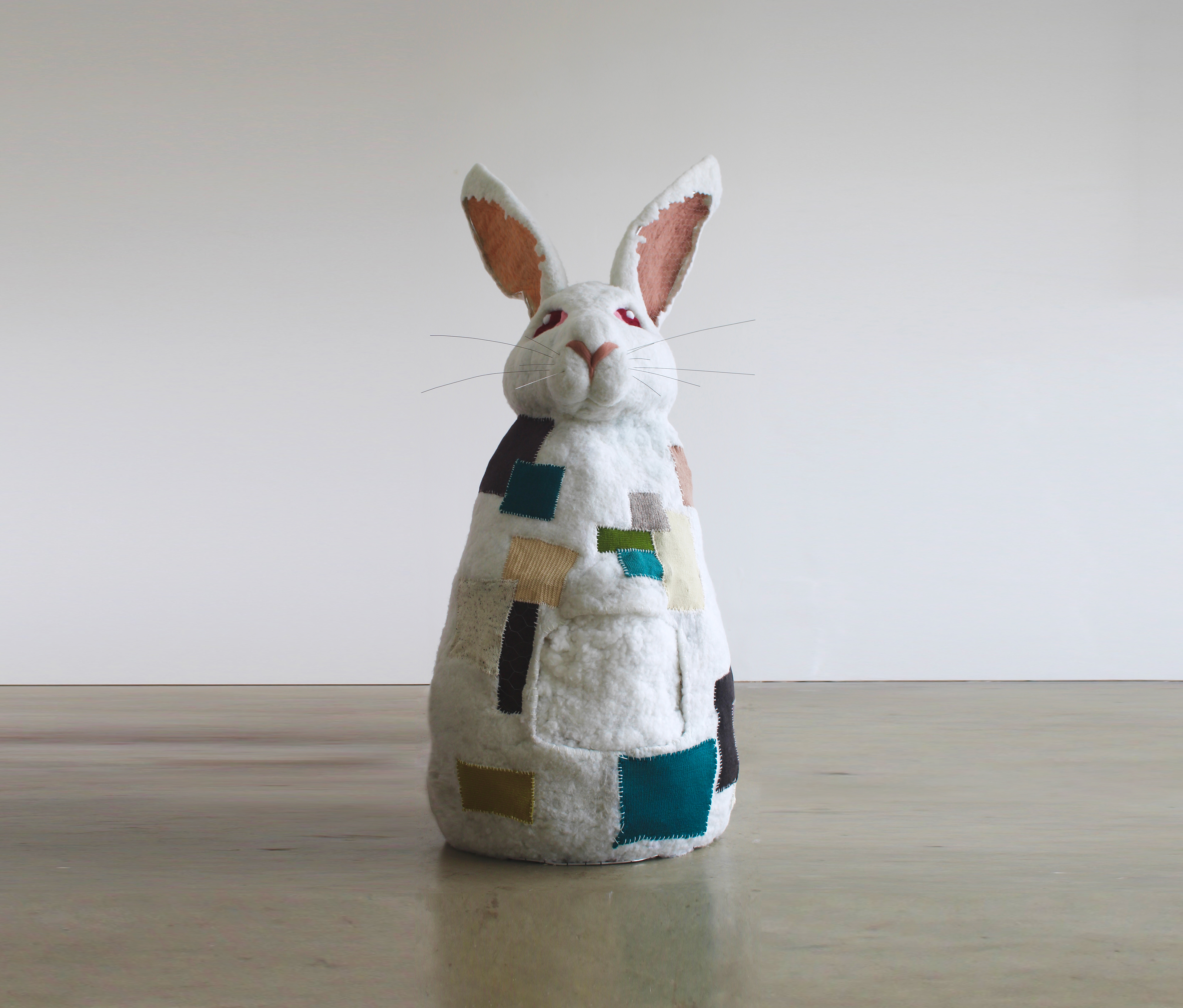 Wool, thread, chicken wire, steel, rubber, plywood, Arduino